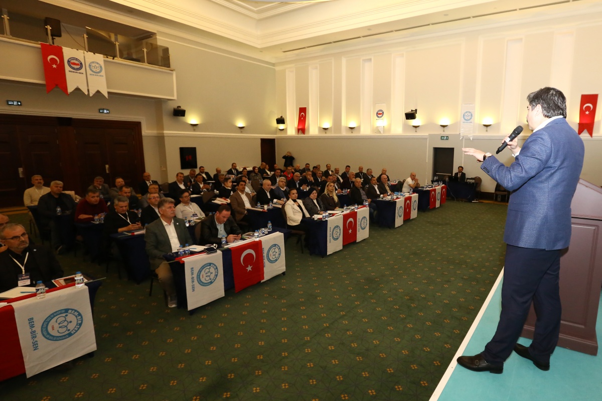 Konuşmasında toplu sözleşme süreçlerine ve elde edilen kazanımlarımıza değinen Genel Başkanımız Uslu; “Bir sendikanın en temel görevi; mensuplarının maddi, sosyal ve özlük haklarını geliştirmektir. Biz de Bem-Bir-Sen olarak bu sorumluluğun gereğini, her dönem fazlasıyla yerine getirme gayretindeyiz. 2012’de 1. Dönem Toplu Görüşme masasında o tarihi imzayı tek başımıza atarak 'kazanımlar dönemini' başlatan irade biziz. Sosyal Denge Tazminatı'ndan (SDS) nakdi yemek yardımına, sözleşmeli personelin kadro düzenlemesinden itfaiye ve zabıta personelimizin tazminat haklarına kadar; mühendisimizden idari kadromuza kadar her unvanda elde edilen iyileştirmeler, bizim kararlı mücadelemizin birer meyvesidir.