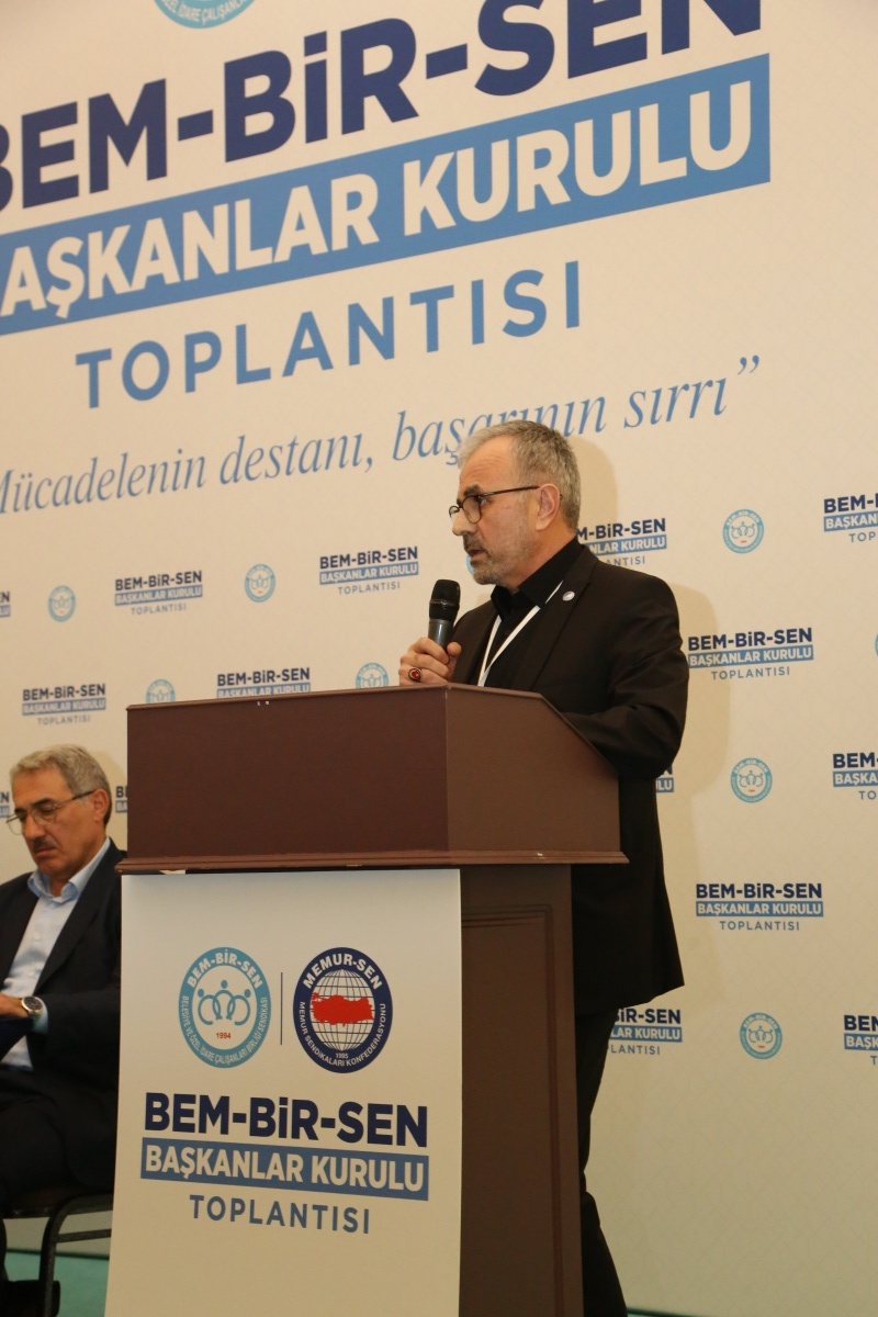 Program Genel Başkan Yardımcımız Hanefi Sinan’ın açılış konuşması ile devam eden Başkanlar Kurulumuzda teşkilat mensuplarına hitap eden Genel Başkanımız Levent Uslu, “İnançla yürüyen, azimle çalışan; gece gündüz demeden emek veren, her türlü baskı, engel ve zorluğa rağmen iddiasını büyüten Bem-Bir-Sen teşkilatları olarak bir araya geldik. 33 yıldır sendikal mücadelemizde kararlılıkla, inançla ve teşkilat ruhuyla çalışmaya devam ediyoruz. Rehavetin felaket, hareketin bereket olduğunu bilen; kar kış, yağmur çamur demeden yola revan olan fedakâr teşkilatlarımıza ve vefalı üyelerimize sonuna kadar güveniyorum. Bugüne kadar her zorluğa birlikte direndik, her büyük başarıya birlikte imza attık... Emeğin, hakkın, adaletin ve kardeşliğin sesini daha gür duyurmak; yalnızca üyelerimizin değil, Türkiye’mizin umudu olmak için durmaksızın çalışmayı sürdüreceğiz. Çünkü biz Bem-Bir-Sen'iz ve bizim sözümüz sadece bugüne değil, yarına da emanettir.”