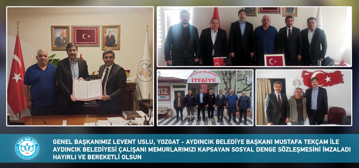 Aydıncık Belediye Başkanı Mustafa Tekçam ise belediye yönetiminde insan kaynağının verimli yönetilmesine vurgu yaparak; “İlçemize sunulan hizmetlerin niteliği, personelimizin huzurlu bir ortamda ve hak ettiği imkanlarla çalışmasıyla doğrudan ilişkilidir. Çalışanlarımızın sosyal ve mali haklarını iyileştirme yolunda imzaladığımız bu protokolün hayırlara vesile olmasını diliyor; sürece katkı sunan Bem-Bir-Sen Genel Başkanı Sayın Levent Uslu’ya ve beraberindeki heyete teşekkürlerimi sunuyorum.” ifadelerini kullandı.