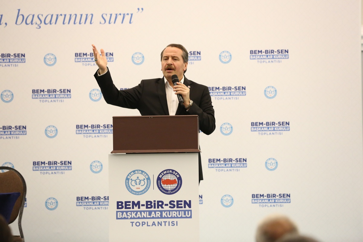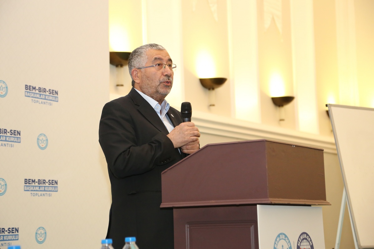 Konuşmasında toplu sözleşme süreçlerine ve elde edilen kazanımlarımıza değinen Genel Başkanımız Uslu; “Bir sendikanın en temel görevi; mensuplarının maddi, sosyal ve özlük haklarını geliştirmektir. Biz de Bem-Bir-Sen olarak bu sorumluluğun gereğini, her dönem fazlasıyla yerine getirme gayretindeyiz. 2012’de 1. Dönem Toplu Görüşme masasında o tarihi imzayı tek başımıza atarak 'kazanımlar dönemini' başlatan irade biziz. Sosyal Denge Tazminatı'ndan (SDS) nakdi yemek yardımına, sözleşmeli personelin kadro düzenlemesinden itfaiye ve zabıta personelimizin tazminat haklarına kadar; mühendisimizden idari kadromuza kadar her unvanda elde edilen iyileştirmeler, bizim kararlı mücadelemizin birer meyvesidir.