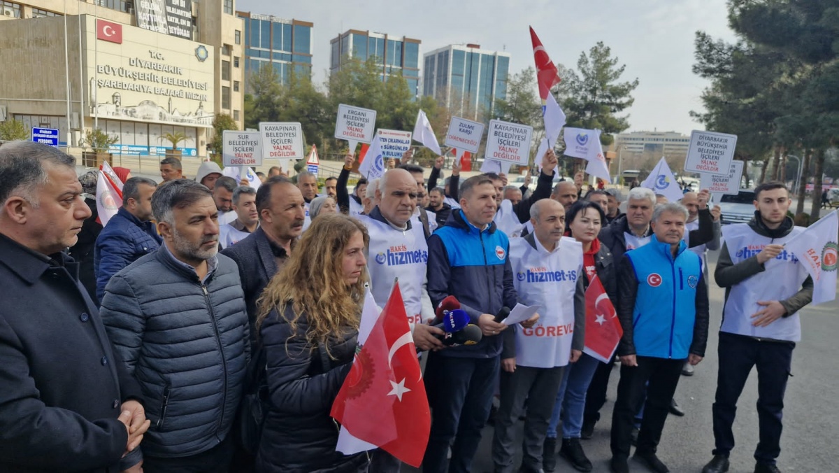 DEM Partili Diyarbakır Büyükşehir Belediyesi'nde yaşanan emekçi kıyımı, mobbing ve baskılar yoğun bir şekilde devam ederken, mağdur edilen çalışanlar haklarını aramaya devam ediyor. Bu kapsamda, Hizmet-İş Diyarbakır Şubesi tarafından yapılan basın açıklamasına geniş katılım sağlandı.